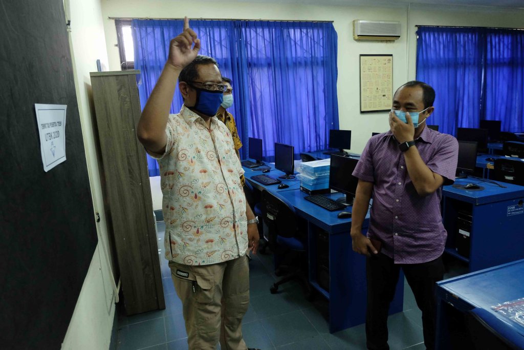 Komisioner BNSP, Miftahul Aziz, meninjau Ruang Lab Prodi Animasi yang terletak di lantai dua Gedung Dekanat FSMR didampingi oleh Pembantu Dekan II FSMR ISI Yogyakarta, Deddy Setyawan, M.Sn. pada saat peninjauan kesiapan LSP ISI Yogyakarta (1/8).