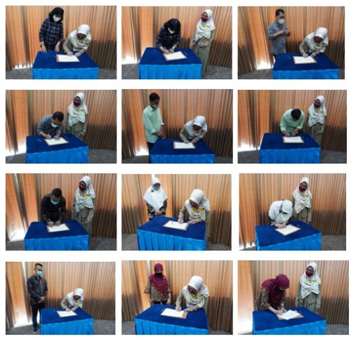 Seluruh anggota tim Zona Integritas FSMR membubuhkan tanda tangannya sebagai komitmen mengemban amanah penunjukan FSMR sebagai fakultas yang menuju Zona Integritas (9/9/2020).