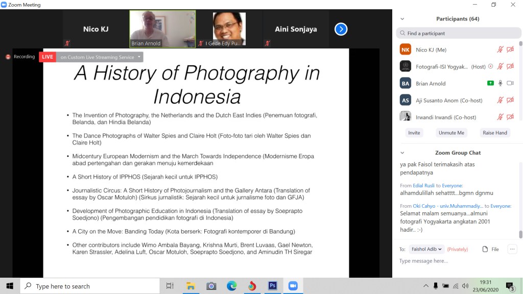 Brian Arnold mempresentasikan karya bukunya saat mengisi webinar bertajuk “Finding Photographic Practice in Southeast Asia” pada Selasa, 23 Juni 2020 yang merupakan hasil kerja sama antara Program Studi Fotografi, Fakultas Seni Media Rekam (FSMR), Institut Seni Indonesia (ISI) Yogyakarta dengan American Institute for Indonesian Studies (AIFIS).